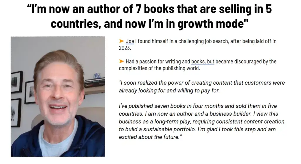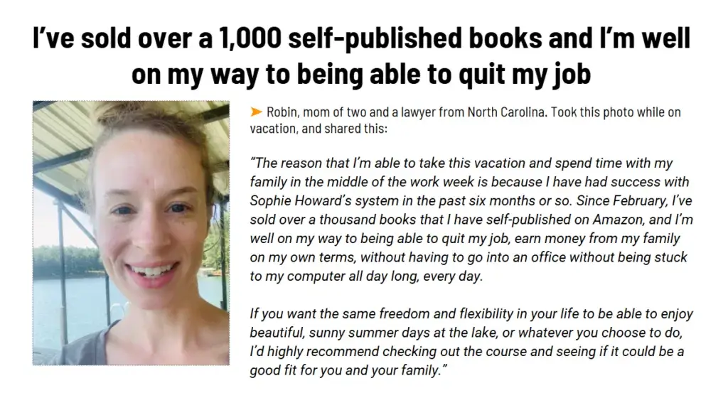 “Je gagne en moyenne entre 200 et 300 $ par jour avec seulement trois livres. Oui, vous avez bien lu : un bénéfice net de 200 à 300 $ par jour ! Mon meilleur jour a été de vendre plus de 1 327 livres.”